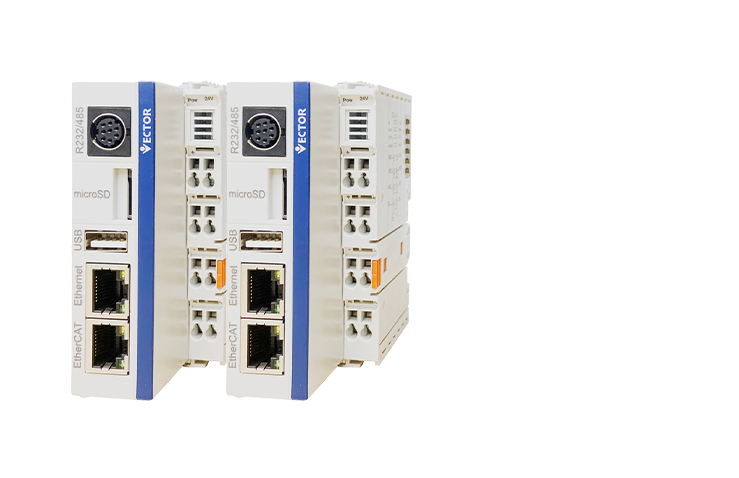 • 威科達VE系列運動控制器,搭載高性能CPU(4核1.6GHZ主頻)具有強大的運算能力,基于linux系統,采?CODESYS編程?具,?持IEC61131-3國際標準的6種編程語?的高性能運動控制器。標配EtherCAT工業以太網實時總線,可以實現最大64軸同步控制。
